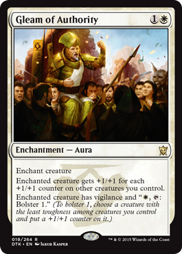Enchant creature Enchanted creature gets +1/+1 for each +1/+1 counter on other creatures you control. Enchanted creature has vigilance and , : Bolster 1.