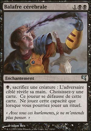 , Sacrifice a creature: Look at target opponent's hand and choose a card from it. That player discards that card. Play this ability only if you could play a sorcery.