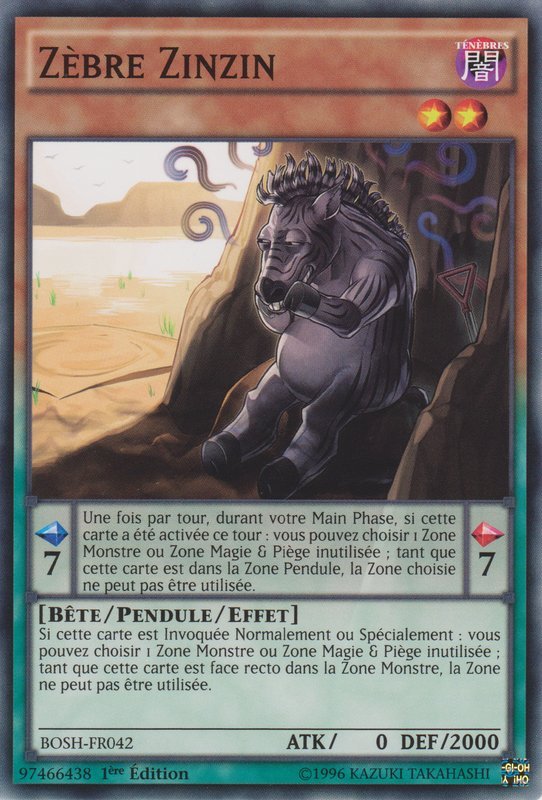 Pendule : 7 Une fois par tour, durant votre Main Phase, si cette carte a été activée ce tour : vous pouvez choisir 1 Zone Monstre ou Zone Magie & Piège inutilisée ; tant que cette carte est dans la Zone Pendule, la Zone choisie ne peut pas être utilisée