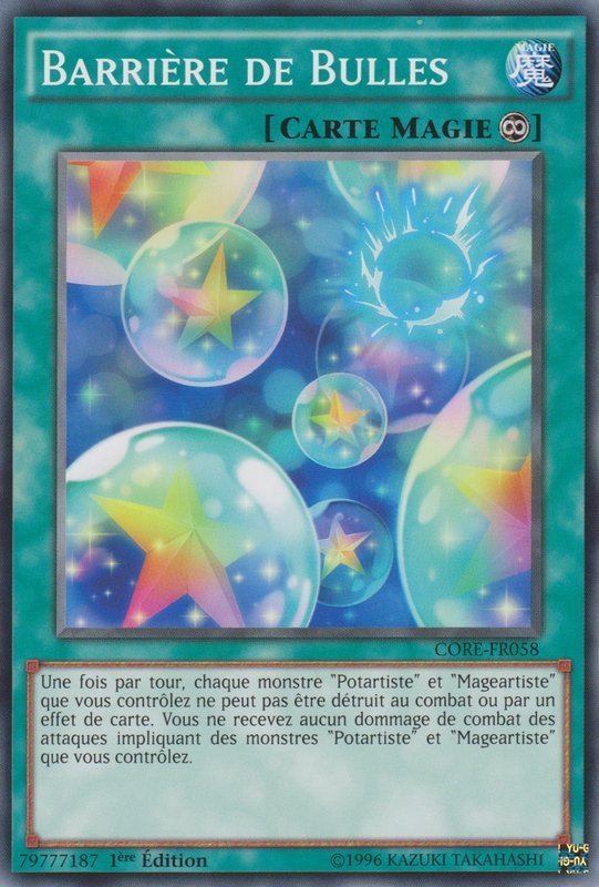 Une fois par tour, chaque monstre "Potartiste" et "Mageartiste" que vous contrôlez ne peut pas être détruit au combat ou par un effet de carte. Vous ne recevez aucun dommage de combat des attaques impliquant des monstres "Potartiste" et "Mageartiste" que vous contrôlez.
