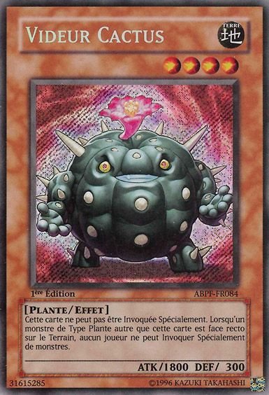 Cette carte ne peut pas être Invoquée Spécialement. Lorsqu'un monstre de Type Plante autre que cette carte est face recto sur le Terrain, aucun joueur ne peut Invoquer Spécialement de monstres.