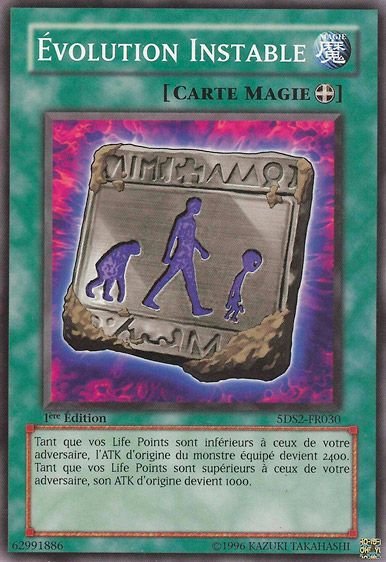 Tant que vos Life Points sont inférieurs à ceux de votre adversaire, l'ATK d'origine du monstre équipé devient 2400. Tant que vos Life Points sont supérieurs à ceux de votre adversaire, son ATK d'origine devient 1000.