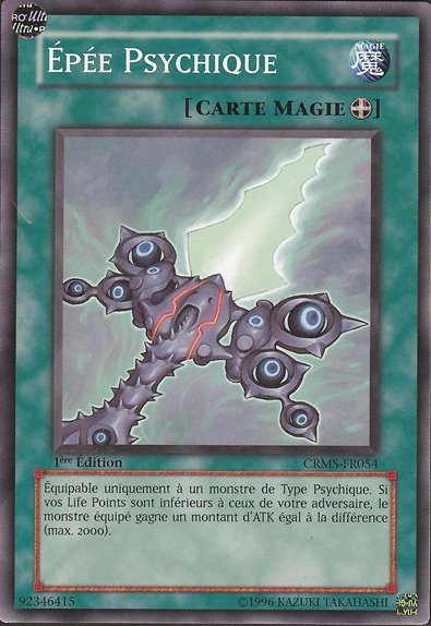 Equipable uniquement à un monstre de Type Psychique. Si vos Life Points sont inférieurs à ceux de votre adversaire, le monstre équipé gagne un montant d'ATK égal à la différence (max. 2000).