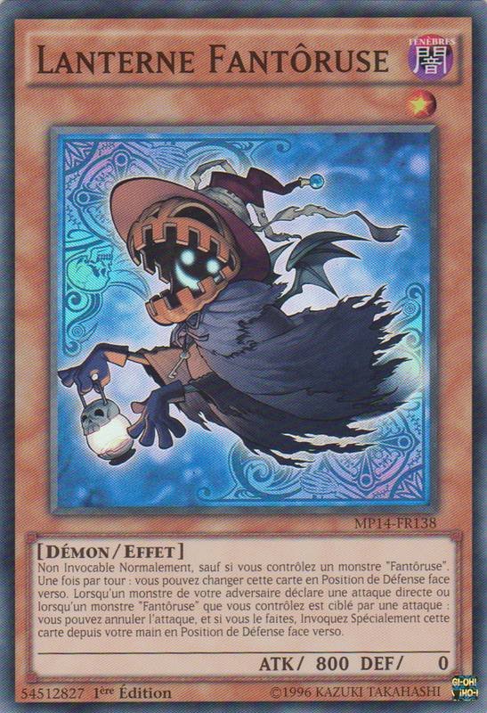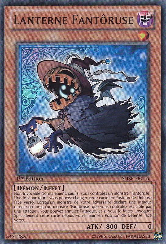 Non invocable Normalement, sauf si vous contrôlez un monstre "Fantôruse". Une fois par tour : vous pouvez changer cette carte en Position de Défense face verso. Lorsqu'un monstre de votre adversaire déclare une attaque directe ou lorsqu'un monstre "Fantôruse" que vous contrôlez est ciblé par une attaque : vous pouvez annuler l'attaque, et si vous le faites, invoquez spécialement cette carte depuis votre main en Position de Défense face Verso.
