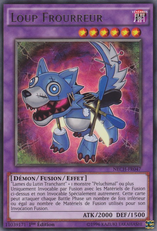 "Lames du Lutin Tranchant" + 1 monstre "Peluchimal" ou plus Uniquement Invocable par Fusion avec les Matériels de Fusion ci-dessus et non Invocable Spécialement autrement. Cette carte peut attaquer chaque Battle Phase un nombre de fois inférieur ou égal au nombre de Matériels de Fusion utilisés pour son Invocation Fusion.