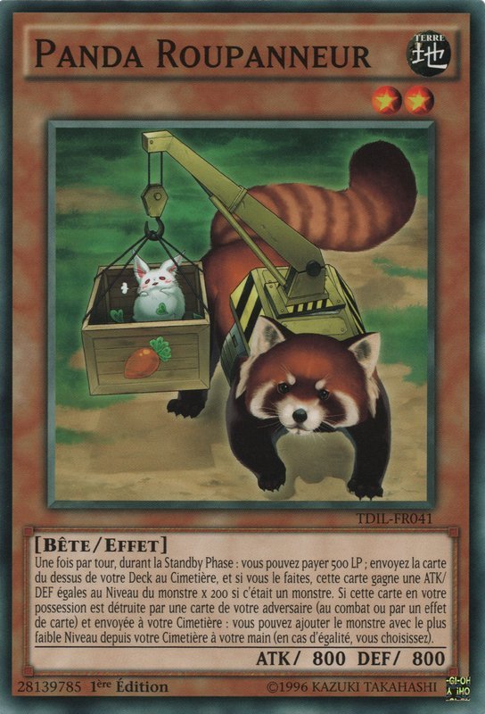 Une fois par tour, durant la Standby Phase : vous pouvez payer 500 LP ; envoyez la carte du dessus de votre Deck au Cimetière, et si vous le faites, cette carte gagne une ATK/DEF égales au Niveau du monstre x 200 si c'était un monstre. Si cette carte en votre possession est détruite par une carte de votre adversaire (au combat ou par un effet de carte) et envoyée à votre Cimetière : vous pouvez ajouter le monstre avec le plus faible Niveau depuis votre Cimetière à votre main (en cas d'égalité, vous choisissez).