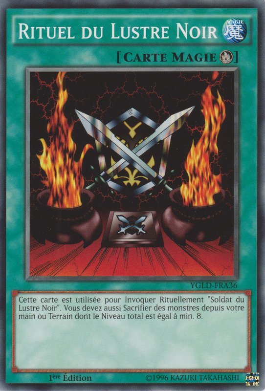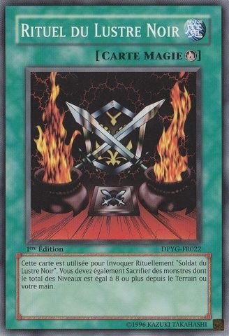 Cette carte est utilisée pour faire une Invocation Rituelle de "Soldat du Lustre Noir". Vous devez également sacrifier des monstres dont le total des Niveaux est égal à 8 ou plus du Terrain ou de votre main.