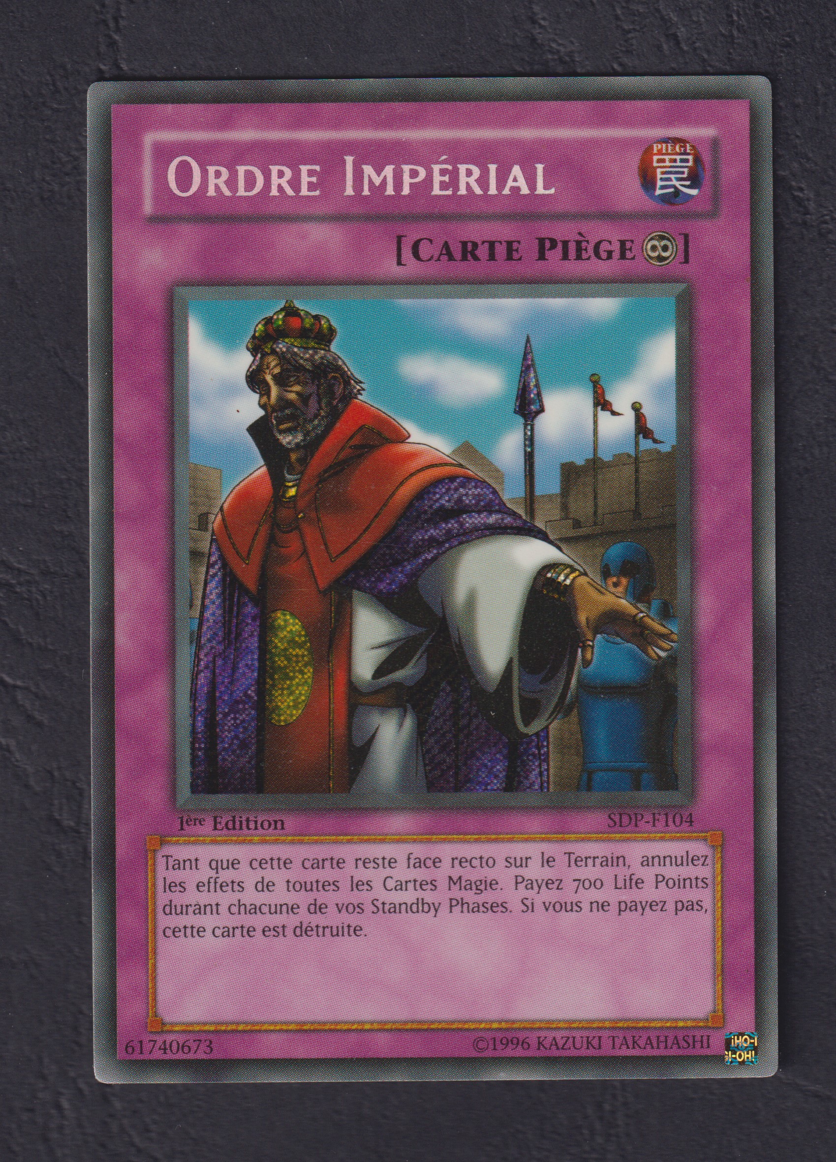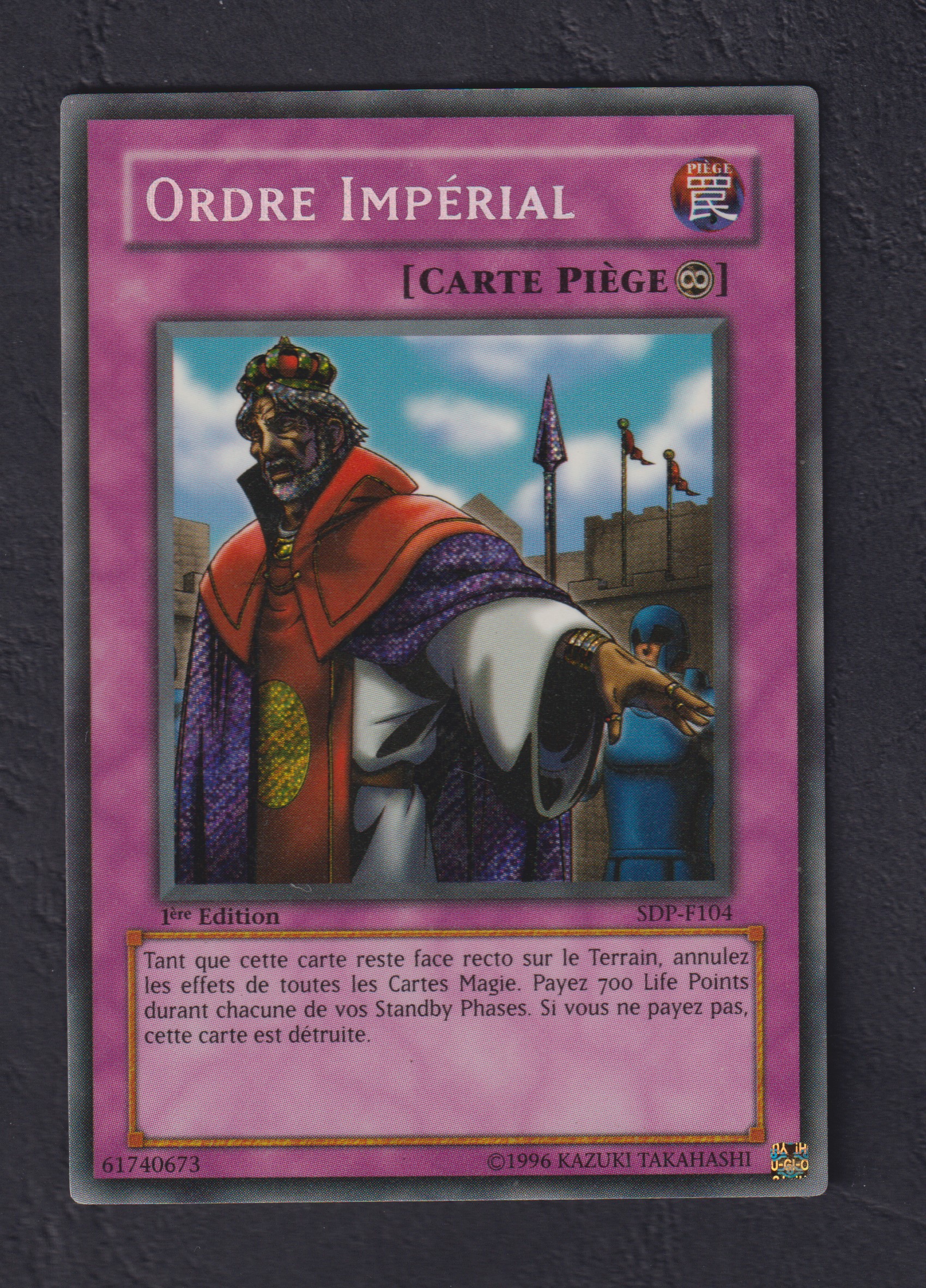 Tant que cette carte reste face recto sur le terrain, annulez les effets de toute les Cartes Magie. Payez 700 Life Points durant chaqune de vos Standby Phase. Si vous ne le faite pas cette carte est détruite.
