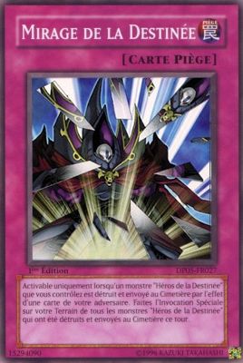 Lorsqu'un monstre "HÉROS de la Destinée" que vous contrôlez est détruit et envoyé au Cimetière par un effet de carte de votre adversaire : Invoquez Spécialement tous les monstres "HÉROS de la Destinée" détruits et envoyés aux Cimetières ce tour sur votre Terrain.