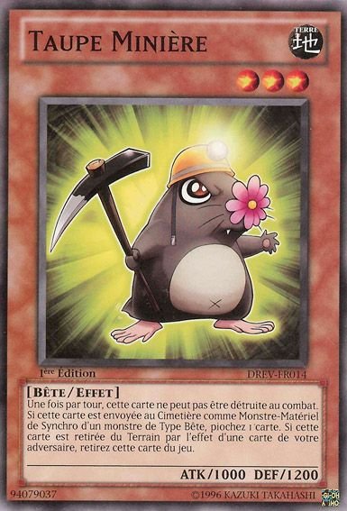 Une fois par tour, cette carte ne peut pas être détruite au combat. Si cette carte est envoyée au Cimetière comme Monstre-Matériel de Synchro d'un monstre de Type Bête, piochez 1 carte. Si cette carte est retirée du Terrain par l'effet d'une carte de votre adversaire, retirez cette carte du jeu.