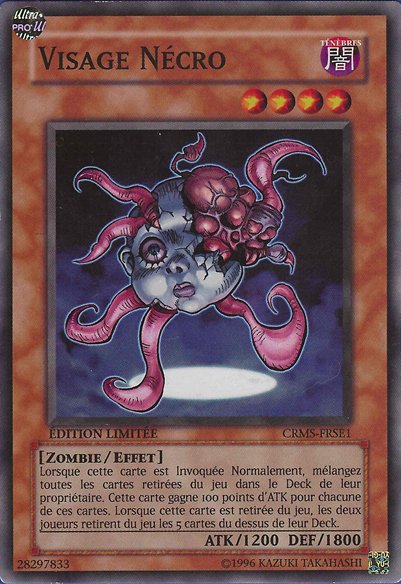 Lorsque cette carte est Invoquée par Invocation Normale, mélangez toutes les cartes retirées du jeu dans les decks de leurs propriétaires. Cette carte gagne 100 ATK pour chacune de ces cartes. Lorsque cette carte est retirée du jeu, les deux joueurs retirent du jeu les 5 cartes du dessus de leur Deck.
