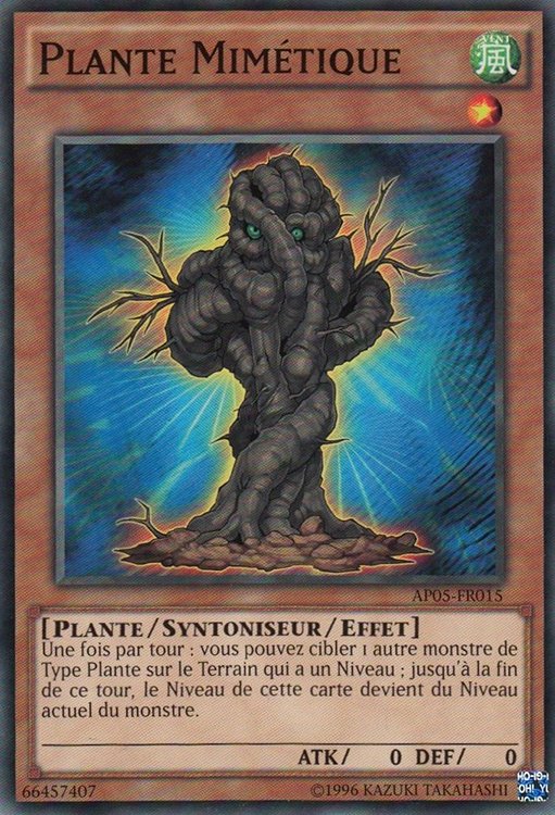 Une fois par tour, vous pouvez sélectionner 1 monstre de Type Plante face recto sur le Terrain pour que le Niveau de cette carte devienne égal au Niveau du monstre sélectionné, jusqu'à la End Phase.