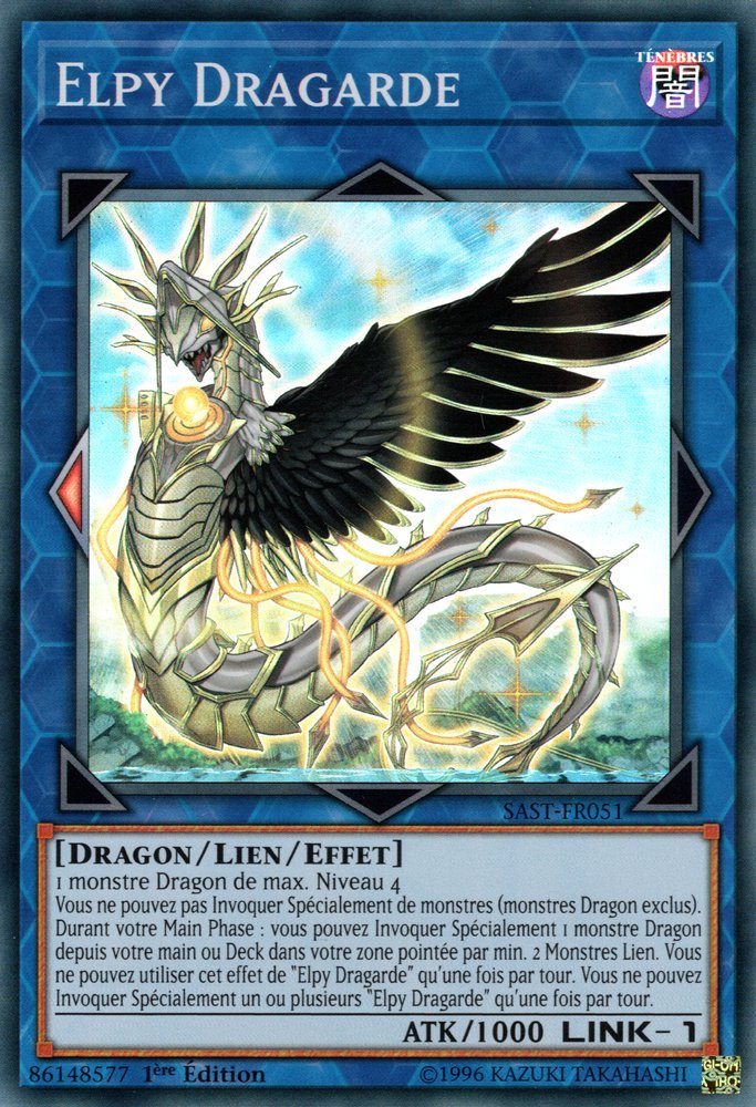 1 monstre Dragon de max. Niveau 4 Vous ne pouvez pas Invoquer Spécialement de monstres (monstres Dragon exclus). Durant votre Main Phase : vous pouvez Invoquer Spécialement 1 monstre Dragon depuis votre main ou Deck dans votre zone pointée par min. 2 Monstres Lien. Vous ne pouvez utiliser cet effet de "Elpy Dragarde" qu'une fois par tour. Vous ne pouvez Invoquer Spécialement un ou plusieurs "Elpy Dragarde" qu'une fois par tour.