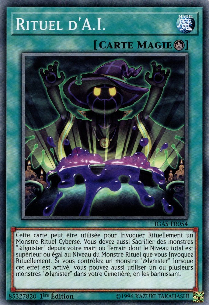 Cette carte peut être utilisée pour Invoquer Rituellement un Monstre Rituel Cyberse. Vous devez aussi Sacrifier des monstres "@Ignister" depuis votre main ou Terrain dont le Niveau total est supérieur ou égal au Niveau du Monstre Rituel que vous Invoquez Rituellement. Si vous contrôlez un monstre "@Ignister" lorsque cet effet est activé, vous pouvez aussi utiliser un ou plusieurs monstres "@Ignister" dans votre Cimetière, en les bannissant.