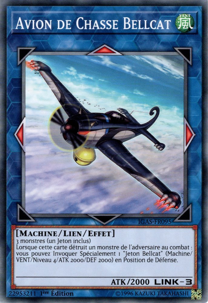 3 monstres (un Jeton inclus) Lorsque cette carte détruit un monstre de l'adversaire au combat : vous pouvez Invoquer Spécialement 1 "Jeton Bellcat" (Machine/VENT/Niveau 4/ATK 2000/DEF 2000) en Position de Défense.