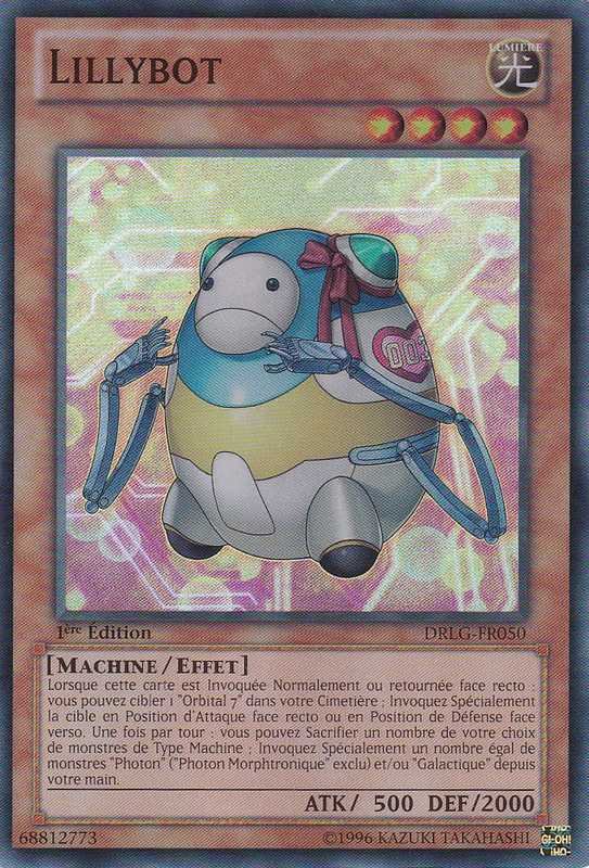 Lorsque cette carte est Invoquée Normalement ou retournée face recto : vous pouvez cibler 1 "Orbital 7" dans votre Cimetière ; Invoquez Spécialement la cible en Position d'Attaque face recto ou en Position de Défense face verso.Une fois par tour : vous pouvez Sacrifier un nombre de votre choix de monstres de Type Machine ; Invoquez Spécialement un nombre égal de monstres "Photon" ("Photon Morphtronique" exclu) et/ou "Galactique" depuis votre main.