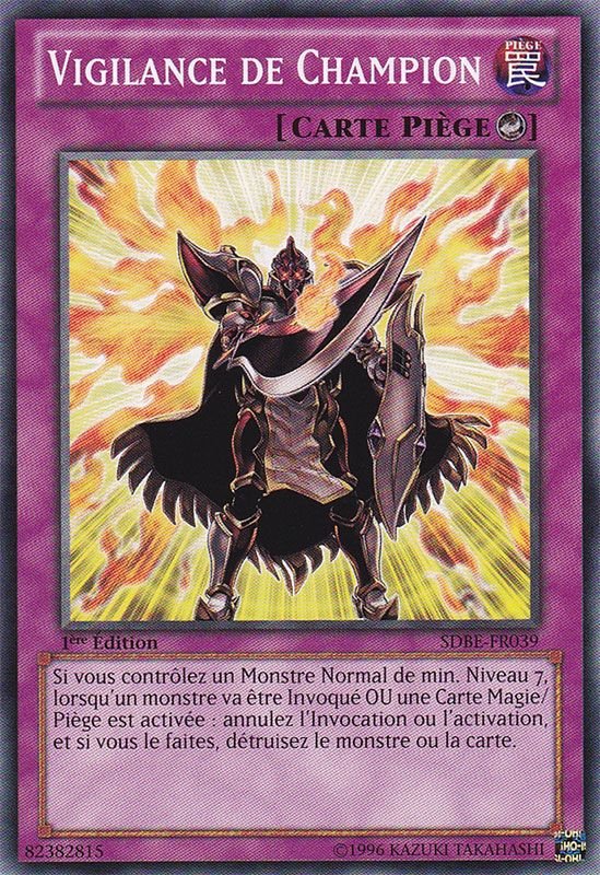 Si vous contrôlez un monstre Normal de min. niveau 7, lorsqu'un monstre va être invoqué OU une carte MAGIE/PIEGE est activée : annulez l'invocation ou l'activation, et si vous le faites, détruisez le monstre ou la carte.