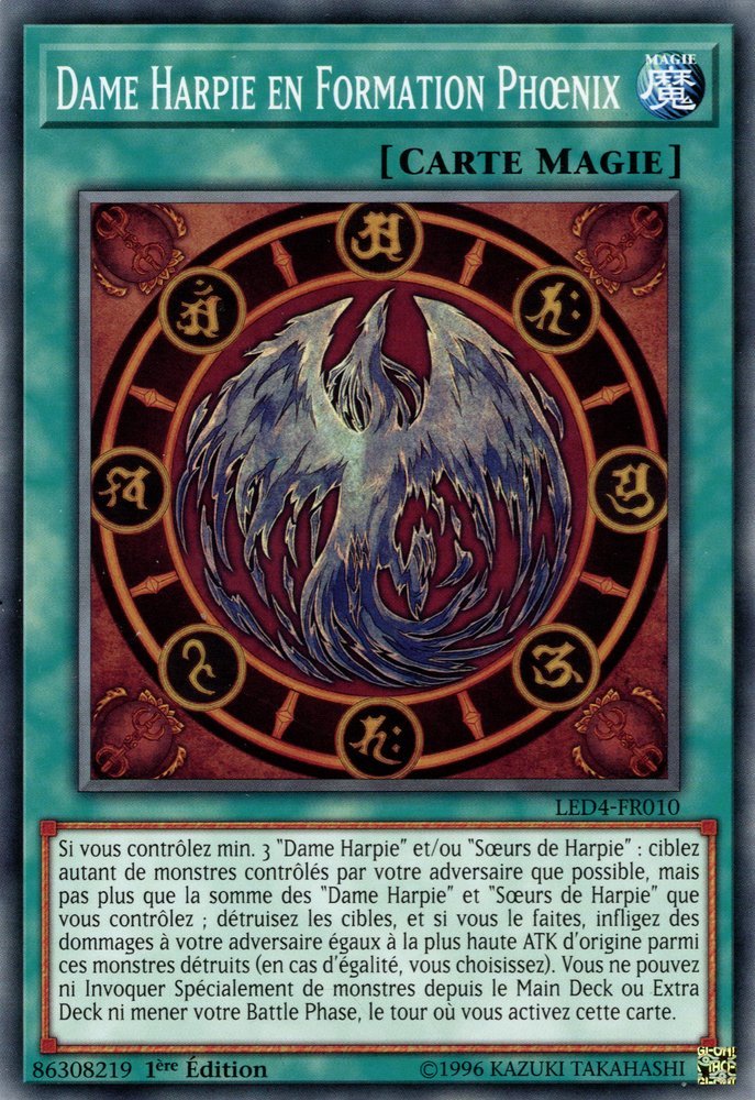 Si vous contrôlez min. 3 "Dame Harpie" et/ou "Soeurs de Harpie" : ciblez autant de monstres contrôlés par votre adversaire que possible, mais pas plus que la somme des "Dame Harpie" et "Soeurs de Harpie" que vous contrôlez ; détruisez les cibles, et si vous le faîtes, infligez des dommages à votre adversaire égaux à la plus haute ATK d'origine parmi ces monstres détruits (en cas d'égalité, vous choisissez). Vous ne pouvez ni Invoquer Spécialement de monstres depuis votre Main Deck ou Extra Deck ni mener votre Battle Phase, le tour où vous activez cet carte.