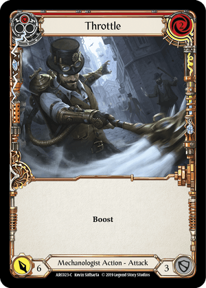 **Boost** *(As an additional cost to play Throttle, you may banish the top card of your deck. If it's a Mechanologist card, Throttle gains **go again**.)*