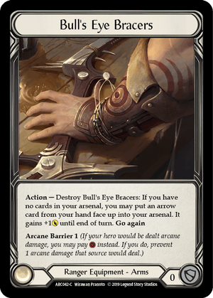 **Action** - Destroy Bull's Eye Bracers: If you have no cards in your arsenal, you may put an arrow card from your hand face up into your arsenal. It gains +1 until end of turn. **Go again**
