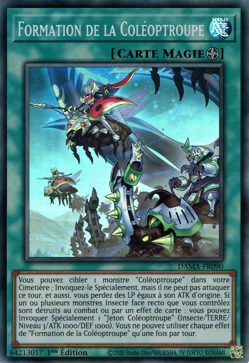 You can target 1 "Beetrooper" monster in your GY; Special Summon it, but it cannot attack this turn, also you lose LP equal to its original ATK. If a face-up Insect monster(s) you control is destroyed by battle or card effect: You can Special Summon 1 "Beetrooper Token" (Insect/EARTH/Level 3/ATK 1000/DEF 1000). You can only use each effect of "Beetrooper Formation" once per turn.