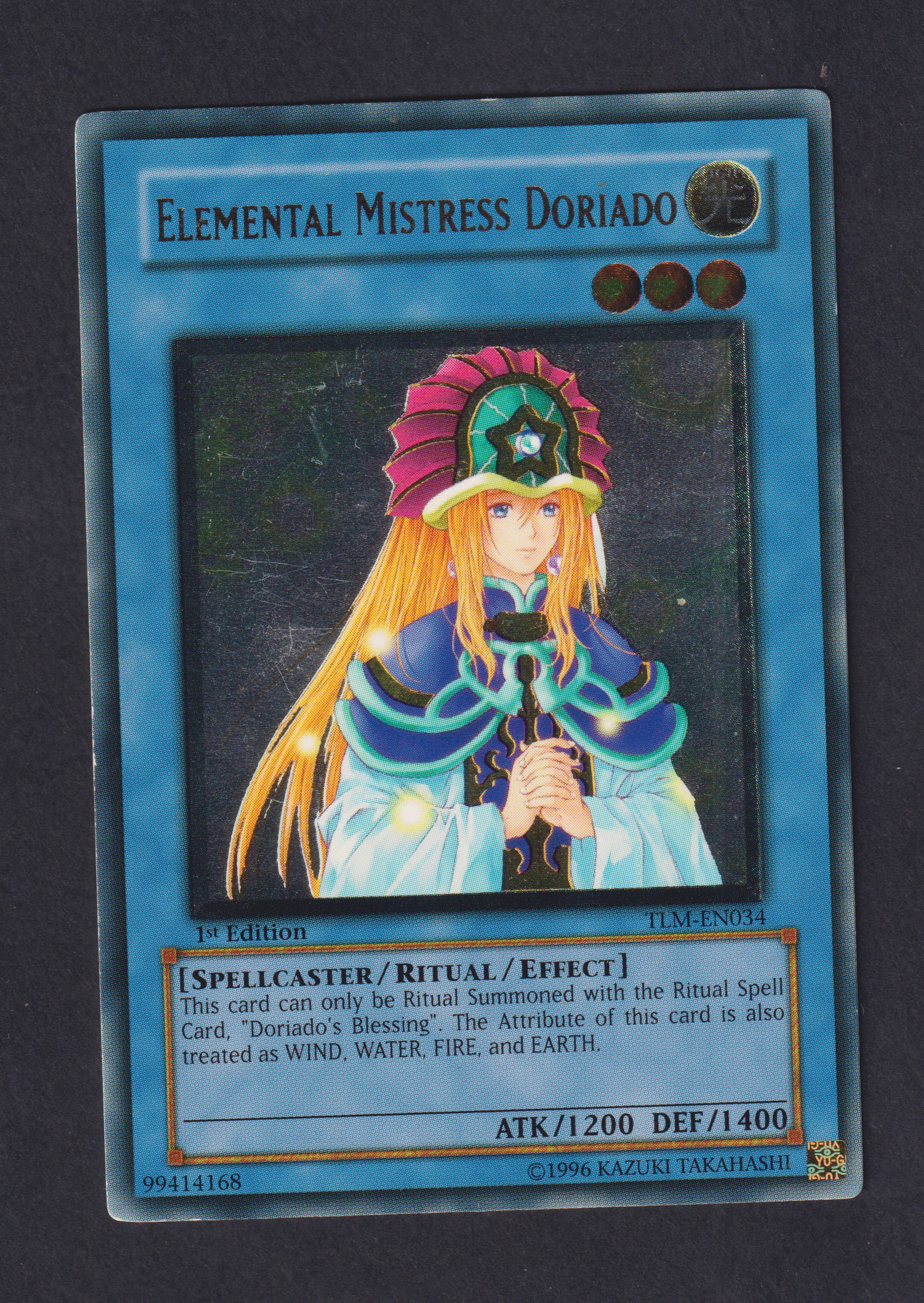 This card can only be Ritual Summoned with the Ritual Spell Card, "Doriado's Blessing". The Attribute of this card is also treated as WIND, WATER, FIRE, and EARTH while it is face-up on the field.