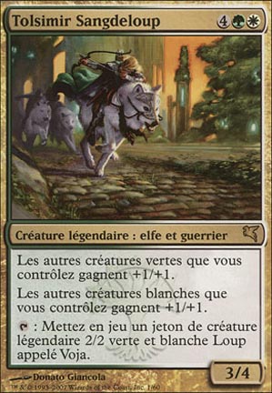 Other green creatures you control get +1/+1. Other white creatures you control get +1/+1. : Create Voja, a legendary 2/2 green and white Wolf creature token.