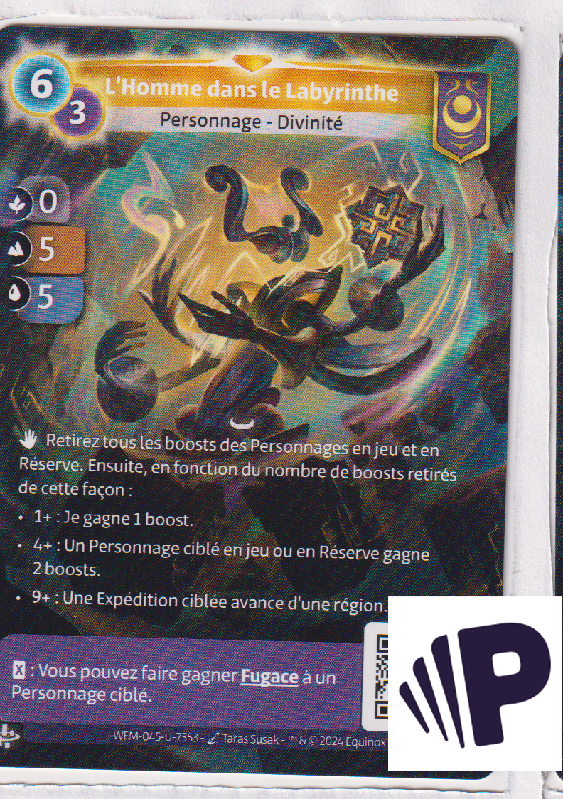 Remove all boosts from Characters in play and in Reserve. Then, depending on the number of boosts removed this way: • 1-4: I gain 2 boosts. • 5-8: Play a card with Hand Cost or less for free. • 9+: The Expedition facing me moves backwards one region.