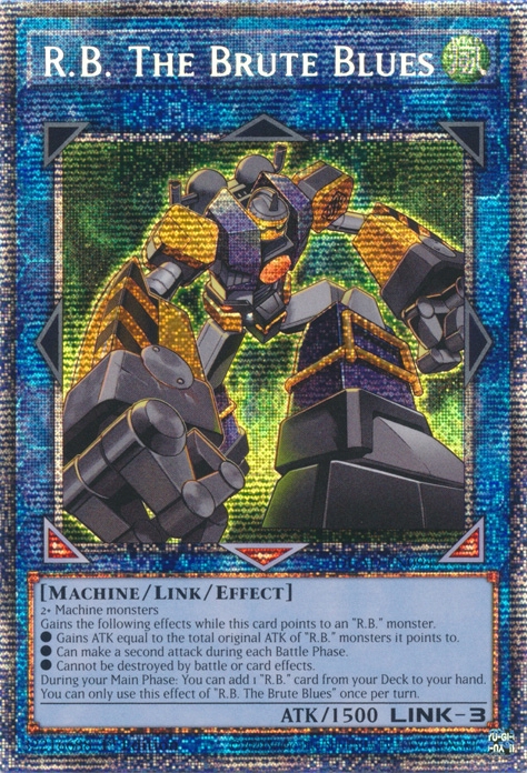 2+ Machine monsters Gains the following effects while this card points to an "R.B." monster. ●Gains ATK equal to the total original ATK of "R.B." monsters it points to. ●Can make a second attack during each Battle Phase. ●Cannot be destroyed by battle or card effects. During your Main Phase: You can add 1 "R.B." card from your Deck to your hand. You can only use this effect of "R.B. The Brute Blues" once per turn.