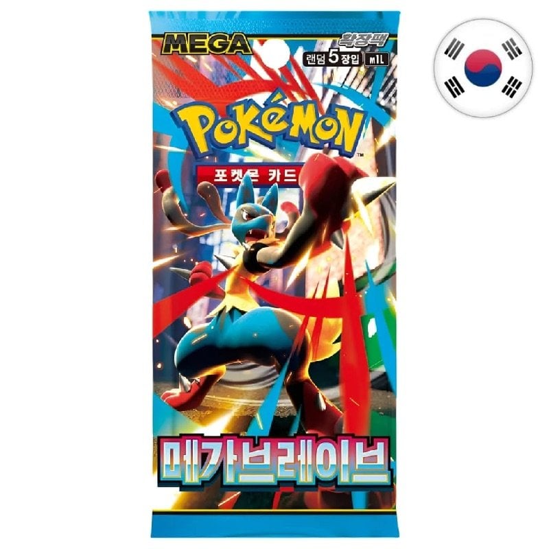 Each Mega Brave (M1L) booster contains 5 Korean cards and may include stunning Illustration Rares (AR), Special Art Rares (SAR), or Super Rares (SR).