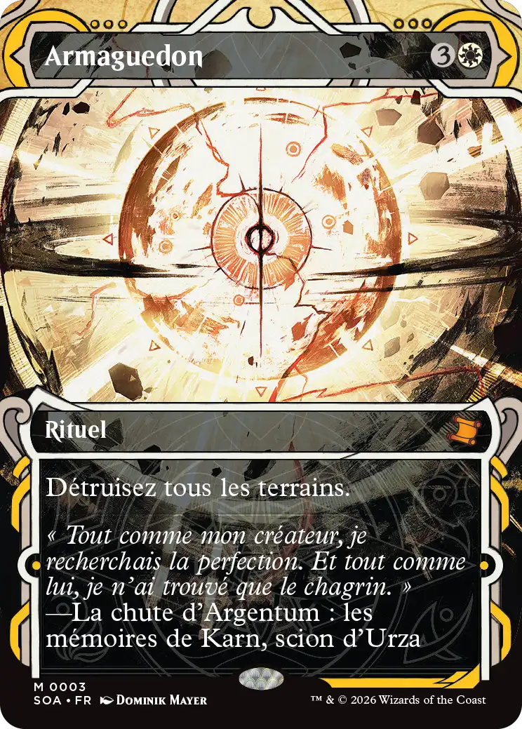 Vous pourrez donc croiser très régulièrement les uncos de l'Archive Mystique dans les decks de vos adversaires. Les rares et mythiques apparaissent bien moins souvent. Certaines d'entre elles peuvent pourtant avoir un impact radical sur la partie, avec des cartes comme Armaguedon, Faille cyclonique ou encore Force de volonté.