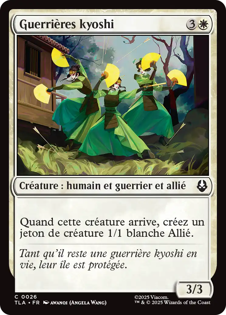 Guerrières kyoshi est une 3/3 de type allié, qui arrive en jeu avec jeton de créature 1/1 allié.
