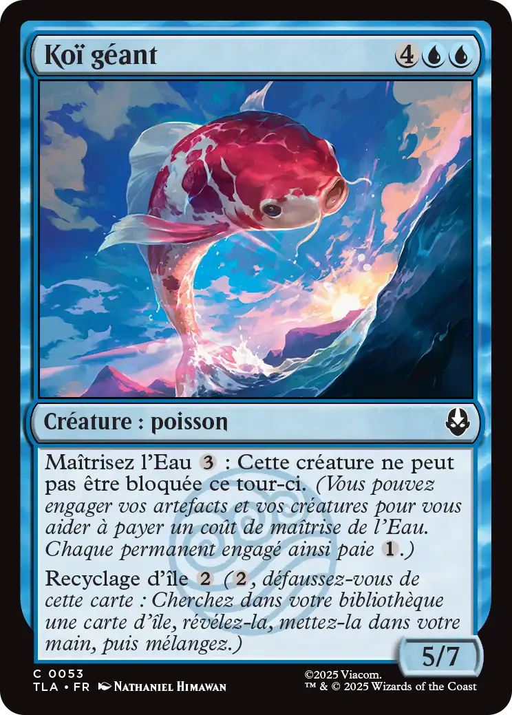 Koï géant fonctionne de la même manière avec le recyclage d'ïle. Pour 6 manas, c'est une 5/7 qui peut se rendre imblocable en payant 3 manas incolores avec la Maîtrise de l'Eau.