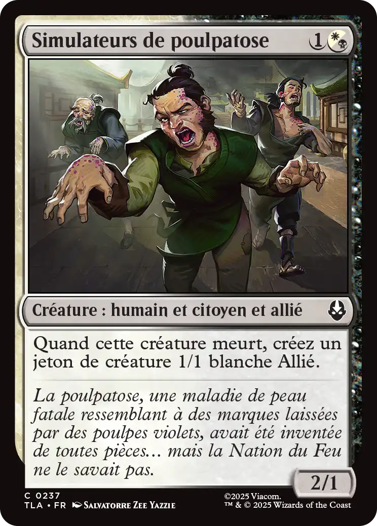 Simulateurs de poulpatose est une 2/1 pour 2 manas qui crée un jeton allié 1/1 lorsqu'il meurt. Vous obtenez donc 2 créatures que vous pouvez sacrifier en une seule carte.