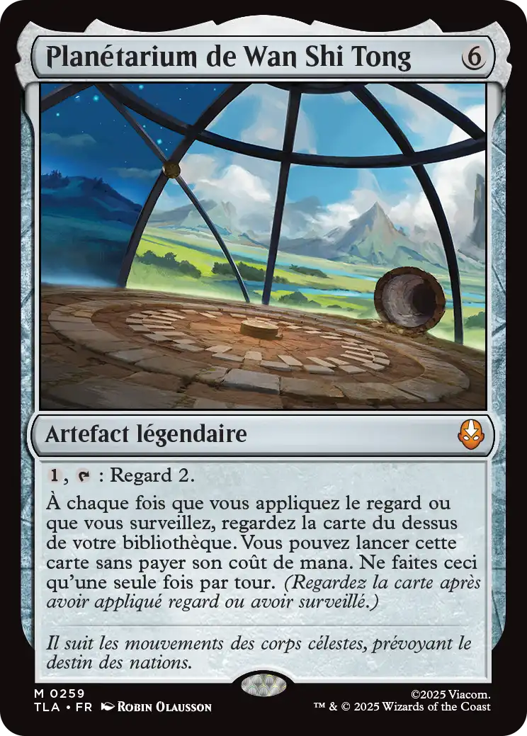 Planétarium de Wan Shi Tong est un artefact légendaire pour 6 manas incolores. Sa capacité activée vous permet d'appliquer regard 2 en l'engageant et en payant 1 mana incolore.