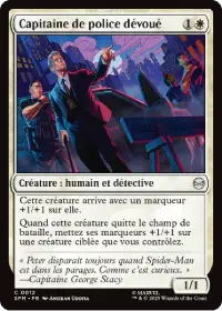 Capitaine de police dévoué arrive en jeu avec un marqueur +1/+1 qu'il donne à une autre créature s'il quitte le jeu. Il vous assure de garder une créature modifiée en jeu.
