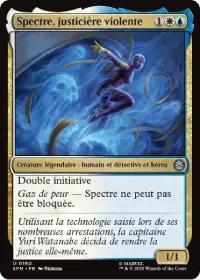 Spectre, justicière violente est une 1/1 imblocable avec la double initiative. C'est la cible idéale de tous vos marqueurs, enchantements et équipements, pour infliger un maximum de dégâts.
