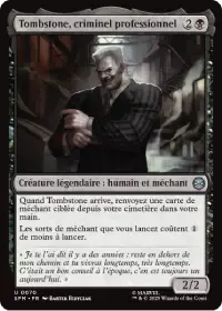 Tombstone, criminel professionnel vous permet de récupérer en main un méchant de votre cimetière lors de son arrivée en jeu. Il réduit également d'un mana incolore le coût de vos autres méchants.