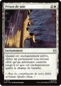 La fin de Spider-Man est une aura qui transforme une créature en citoyen 1/1 sans capacités, pour vous débarrasser d'une menace adverse.