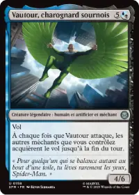 Doc Ock, scientifique sinistre est une 4/5 pour 5 manas avec la défense talismanique si vous contrôlez un autre méchant. Il devient 8/8 si vous avez au moins 8 cartes au cimetière.