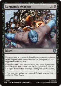 La grande évasion réanime une carte de créature depuis votre cimetière en lui donnant un marqueur +1/+1. Ce sort coûte un mana de moins à lancer avec le désordre.