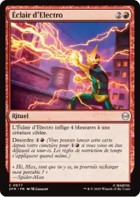 Éclair d'Electro inflige 4 blessures à une créature et peut se jouer pour un mana de moins avec le désordre.