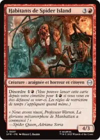 Habitants de Spider Island est une 4/3 pour 4 manas qui peut être jouée depuis votre cimetière avec le désordre pour seulement 2 manas le tour où vous vous en êtes défaussé.