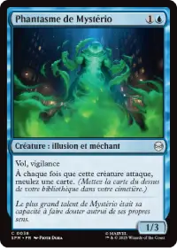 Phantasme de Mystério est un méchant 1/3 avec le vol et la vigilance qui contourne les défenses adverses et fait office de bloqueur en début de partie. Lorsqu'il attaque, vous meulez une carte et remplissez ainsi votre cimetière.