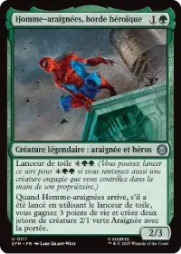 Homme-araignées, horde héroïque est une 2/3 pour 2 manas avec un coût de lanceur de toile plus cher que son coût de base. Elle peut être posée dans les premiers tours puis remontée en main avec un autre lanceur de toile, avant d'être rejouée pour bénéficier de sa capacité d'arrivée en jeu.