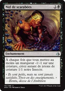 Nid de scarabées est une carte supplémentaire pour former une combo infinie avec Infestation de luciles impériales. Votre Commandante vous permet alors de piocher autant de cartes que vous le souhaitez, jusqu'à trouver de quoi gagner la partie.