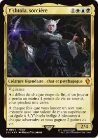 Y'shtola possède également une capacité qui se déclenche lorsque vous jouez un sort non-créature de coût supérieur ou égal à 3. Elle inflige alors 2 blessures à chaque adversaire et vous fait gagner 2 points de vie.