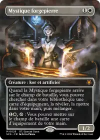 Mystique forgepierre est un Tutor pour aller chercher n'importe quel équipement dans votre bibliothèque. Sa capacité activée vous permet également de poser des cartes d'équipements sur le champ de bataille à moindre coût.