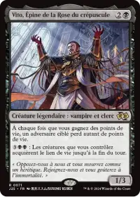 Vito, Épine de la rose du crépuscule fait perdre autant de points de vie à vos adversaires que vous en gagnez. Ils perdent donc 2 points de vie supplémentaires à chaque sort que vous lancez.
