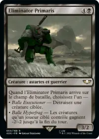 Eliminator Primaris vous donne le choix entre détruire une créature ou donner -2/-2 aux créatures d'un joueur adverse quand il arrive en jeu. Vous pouvez donc détruire la créature la plus gênante à chaque fois que vous le réanimez, ou contrer certaines stratégies qui mettent en jeu de nombreux jetons.